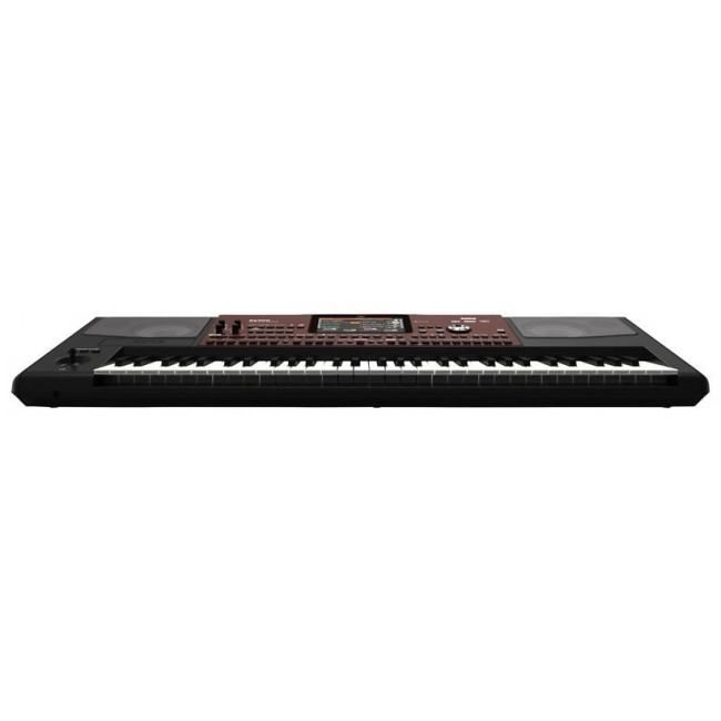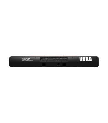 Korg Pa-700 profesionalna aranžer klavijatura. Korg PA 700 aranžer ima 61 tipku, touch response, 128 polyfonih nota, 3 band EQ, EDS-X, DNC, više od 1700 zvukova, 512 custom zvukova, 256 ritmova, 360 stilova, 960MB memorije, MP3 kompatibilnost, guitar mode 2, 7" LED Touch Display, 16 track sekvencer, lyrics display, Micro SD slot, USB/MIDI konekciju, USB host i USB device, sustain pedal jack, programabilni jack, 2x25W zvučnice,stalak za note, struji kabel - UKLJUČEN.