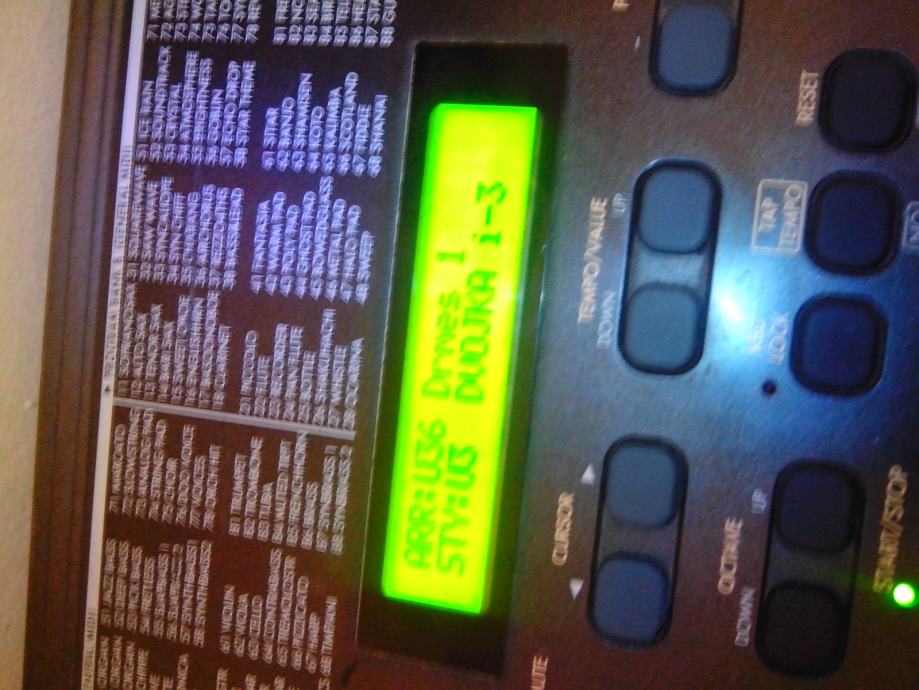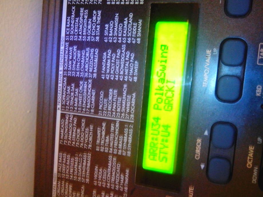 interaktiv aranzer(moze sam odredivat akorde uz ritam kad svirate samo desnom rukom)ima flopy disk,mogu se pustat midi file a uz to i svirat..uz tvornicke ritmove i zvukove moguce je izradit ritmove po volji ili ih ubacit preko flopya i to 64ritma isto tako i zvukove.trenutno od dodanih ritmova dvojke polke grcki..sve ispravno osim potenciometra koji radi na vecoj glasnoci.napajanje je 220V..
