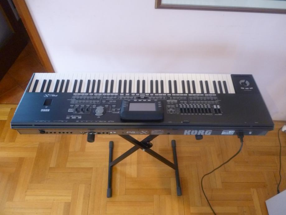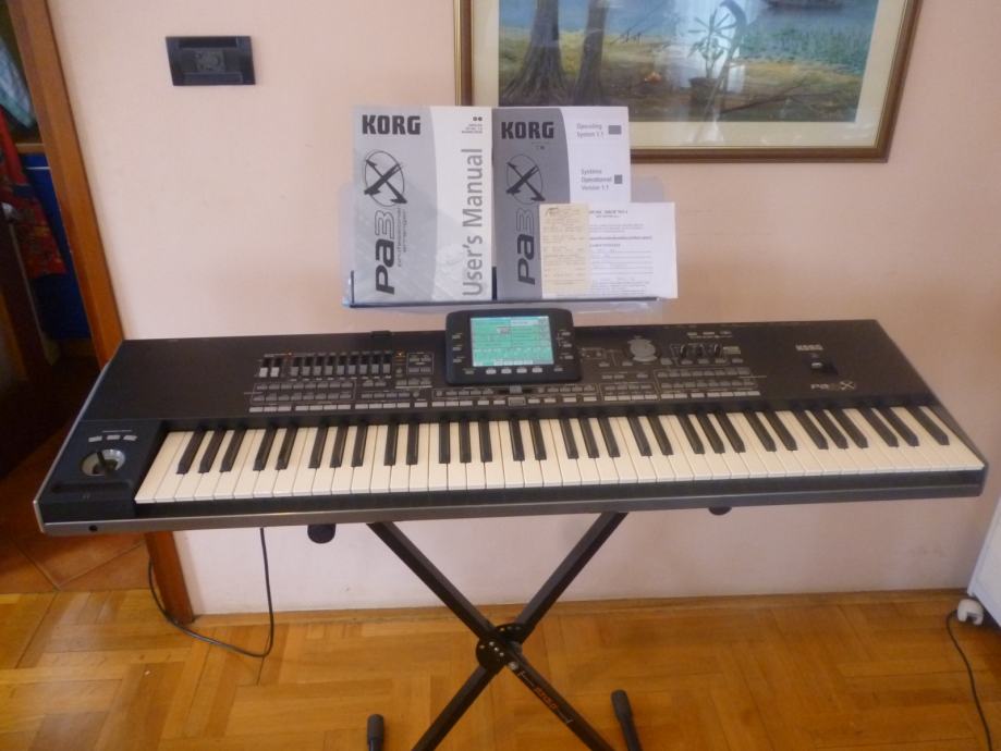 KORG Pa3x pro,6 oktava ili 76 tipki. Kao nov,100% ispravan, ušćuvan 10/10, nema ogrebotine, Prvi vlasnik. Račun. Nikada na gaži. Sviran povremeno kod kuće i poneka fešta za prijatelje. Dodatna velika original korg memorija EXB-M256- 256 MB koja se može izkompresirati na čak 512 MB.Torba za pa3x pro. U syntu su vrhunski Live setovi bubnjeva i ritmova Dynamix, La Campanella , domaći ritmovi i drugi. Semplirani bubnjevi i semplirani saundovi harmonika , tamburica , gitara, bass gitara,saxofona, violina . . . Song book uređen odmah za sviranje raznih pjesama, zabavnih, narodnih, tamburaških...