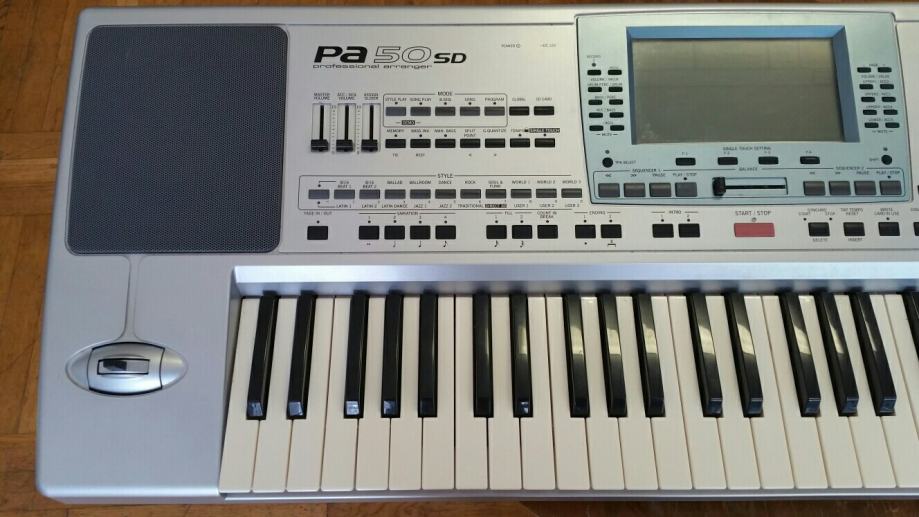 Prodajem Korg PA50 SD u odličnom stanju. Klavijatura se upotrebljavala najviše u kućnom studiju, a na nastupima je služila samo za puštanje matrica. Koristio sam je za pop i jazz glazbu iako joj je najbolja namjena u narodnoj glazbi. Ima pregršt ritmova, a ako vam koji nedostaje lako se skine s interneta i snimi na SD karticu