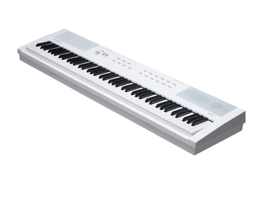 Kurzweil predstavlja digitalni klavir KA E1 s 88 potpuno ponderiranih tipki i mehanizmom s čekićem koji se može pohvaliti podesivom osjetljivošću na dodir. S polifonijom od 128 glasova, KA E1 osigurava besprijekorno sviranje i bez gubitka tona, čak i uz intenzivno korištenje sustain pedale ili kada svira više glasova istovremeno. Nudi 20 pažljivo odabranih zvukova iz tvorničkih postavki, uključujući uspravni, električni klavir, orgulje, klavinet, žice i još mnogo toga. Sa značajkama dijeljenja tipkovnice i slojevitog zvuka, možete jednostavno kreirati glazbene kombinacije za solo nastupe ili sviranje u paru, uz mogućnost podešavanja točke razdvajanja tipkovnice po potrebi. KA E1 ima praktičan metronom s 14 ritmičkih taktova koji su savršeni za vježbanje. Također ima integriranu MIDI funkciju, dok Bluetooth za audio omogućuje bežično povezivanje pametnih uređaja i reprodukciju glazbe preko ugrađenih zvučnika, proširujući mogućnosti sviranja i zabave. Intuitivni jednosmjerni snimač pjesama koristi se za snimanje vaše glazbene izvedbe, što omogućuje jednostavno snimanje. Uz to, KaE1 ima zvučni sustav s četiri zvučnika od 30 W s digitalnim pojačalima, koji pružaju kvalitetan i uravnotežen zvuk. Upravljanje instrumentom je intuitivno, s preglednom kontrolnom pločom koja olakšava pristup svim moćnim značajkama. Ovaj instrument spaja funkcionalnost i jednostavnost, što ga čini prikladnim za glazbenike svih razina. Ispravljač je uključen, a klavir se može napajati i na baterije.