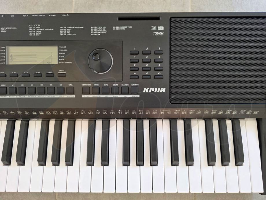 Aranžer klavijatura opremljena sa stotinama zvukova uključujući i Kurzweil-ov Triple Strike Piano (iz PC3 serije Kurzweil radnih stanica), 6-kanalnim snimačem i s preko 200 auto-pratećih uzoraka. KP110 je moćna i izuzetno mobilna aranžer klavijatura namijenjena za sve – bilo da ste početnik ili iskaljeni profesionalac! 61 synth-action tipka s podesivom osjetljivosti na dodir, 653 zadivljujućih tvorničkih postavki zvuka, 240 auto-pratećih uzoraka, mogućnost snimanja pjesama u MIDI formatu (do 10 pjesama može biti snimljeno u 6 traka po pjesmi), moderan stil s integriranim zvučničkim sistemom, jednostavne i intuitivne kontrole.