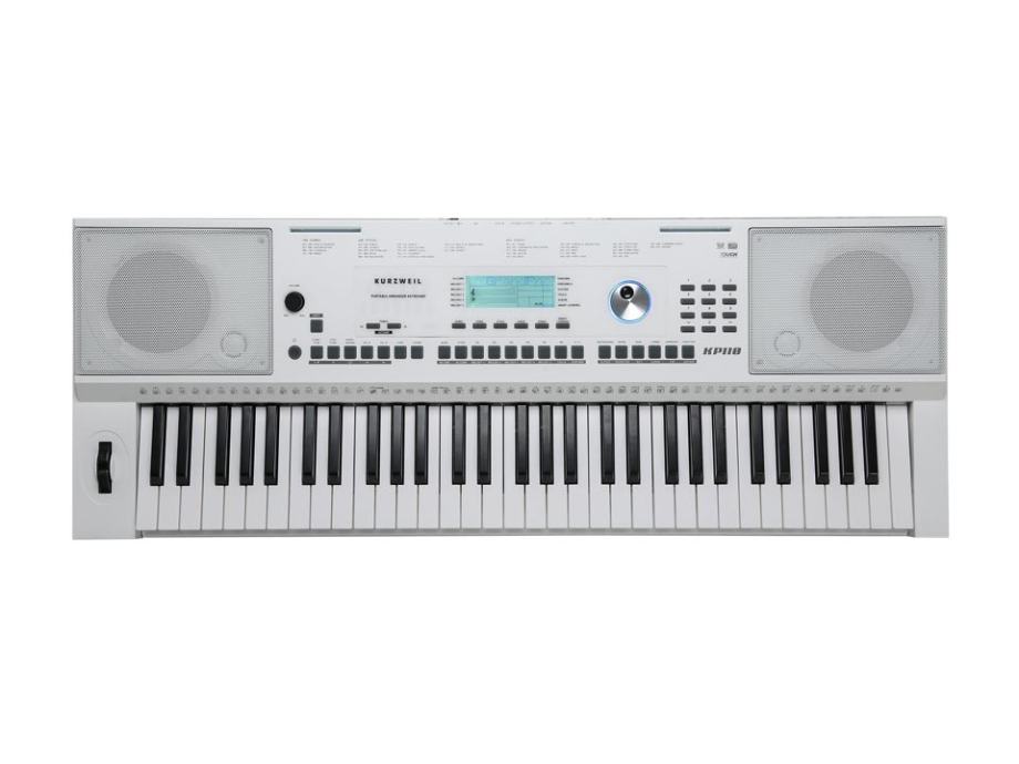 Aranžer klavijatura opremljena sa stotinama zvukova uključujući i Kurzweil-ov Triple Strike Piano (iz PC3 serije Kurzweil radnih stanica), 6-kanalnim snimačem i s preko 200 auto-pratećih uzoraka. KP110 je moćna i izuzetno mobilna aranžer klavijatura namijenjena za sve – bilo da ste početnik ili iskaljeni profesionalac! 61 synth-action tipka s podesivom osjetljivosti na dodir, 653 zadivljujućih tvorničkih postavki zvuka, 240 auto-pratećih uzoraka, mogućnost snimanja pjesama u MIDI formatu (do 10 pjesama može biti snimljeno u 6 traka po pjesmi), moderan stil s integriranim zvučničkim sistemom, jednostavne i intuitivne kontrole. Boja: Bijela