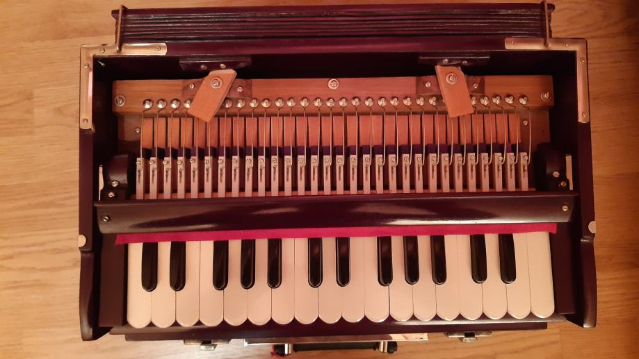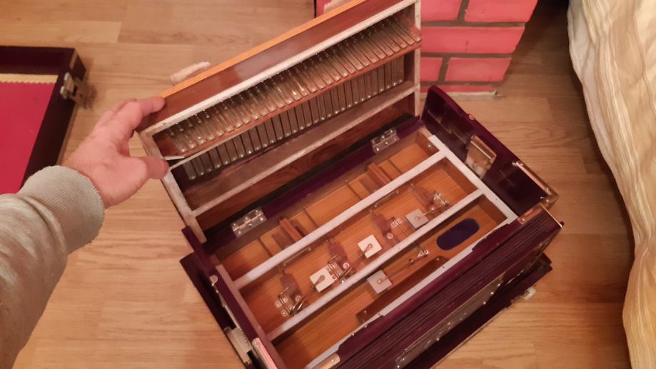 Harmonij je nakon dolaska u Hrvatsku generalno sređen, podešen, naštiman na 440Hz standard i može se koristiti skupa s drugim instrumentima, kao i za studijske snimke. Bolji je nego nov. :)