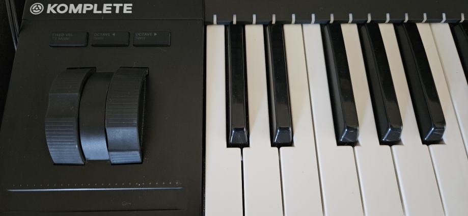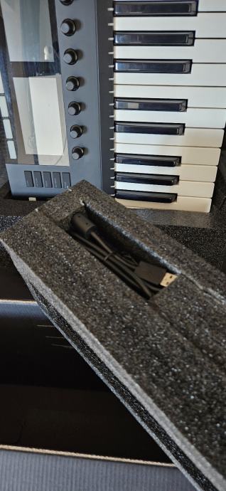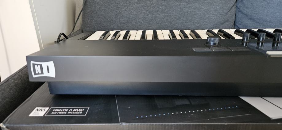 Master Keyboard 61 tipka (Fatar) , korištena 5 mj u privremenom nepušačkom studiju u međuvremenu dok se studio selio na drugu lokaciju. Kupljen za privremeni mali prostor jer mi S88 nije stao. Koristio sam ga samo ja za produkciju. Poklon cover za klavijaturu(na slici). Uz klabijaturu dolazi i odgovarajući softver (NI Komplete 11 Select, sa VST instrumentima i pluginovima dovoljnim za produkciju).