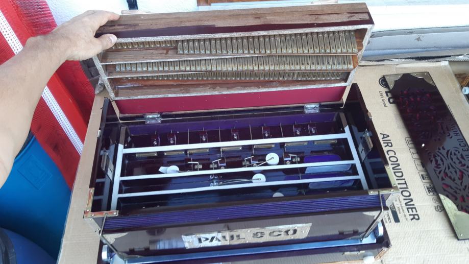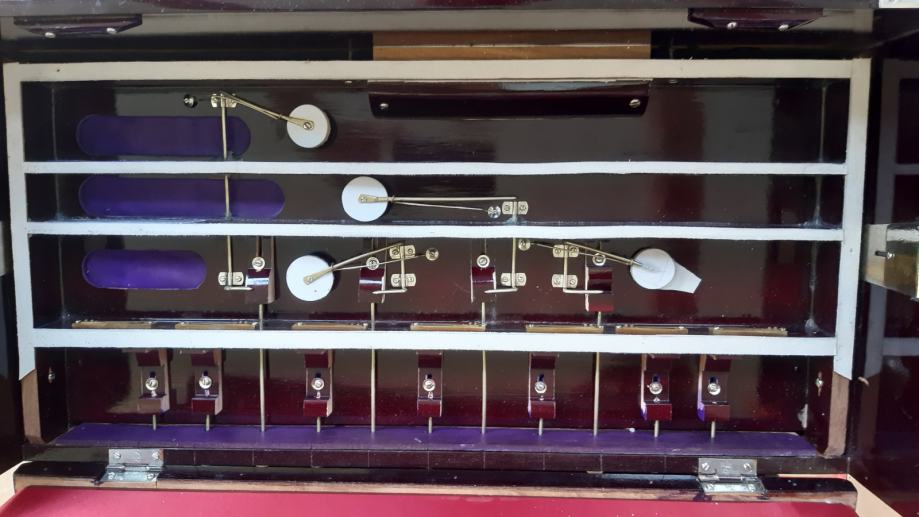 Drveni poklopac omogućuje da se harmonij može svirati i tiše i glasnije (po potrebi) što je zorno prikazano u videu.