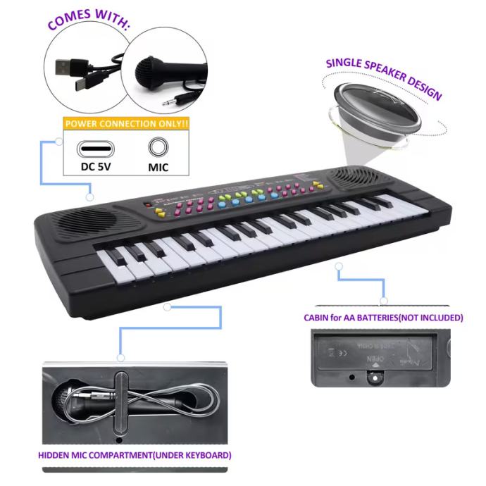 Prijenosni mini synthesizer s 37 tipki, prikladan za djecu od 3+ godine s mikrofonom, USB snimanjem/reprodukcijom, podesivim ugađanjem i ritmom - glazbeno učenje, rođendanski/božićni poklon za dječake i djevojčice (uzrast 3+)
