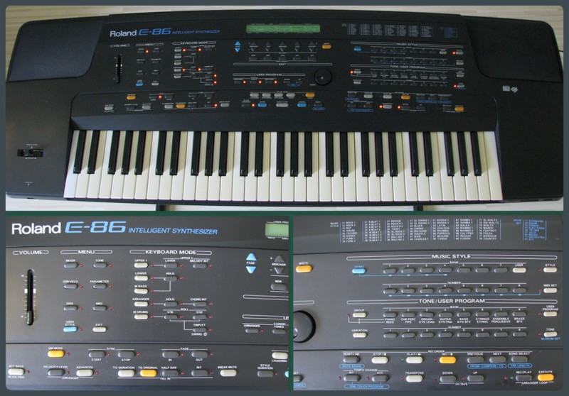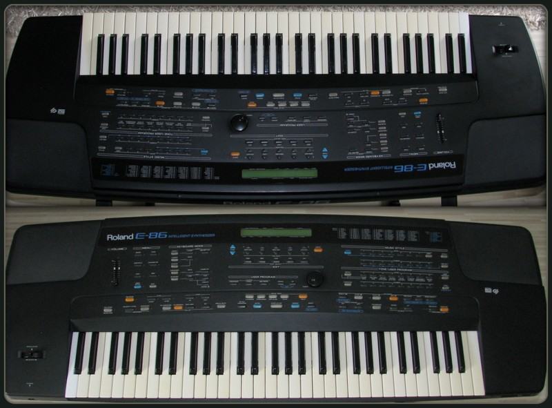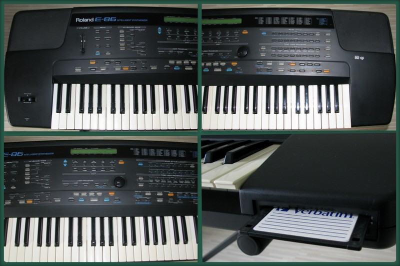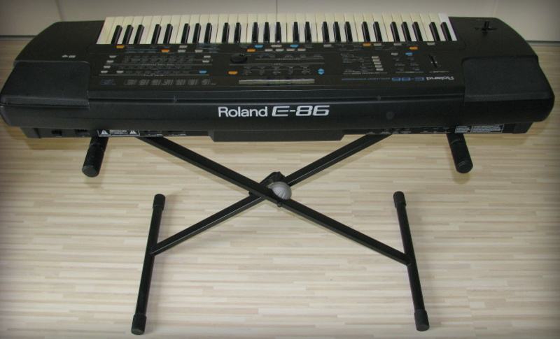 Roland E-86 Inteligent synthesizer, aranžer klavijatura sa pet oktava dinamičkih tipki (osjetljivost u tri nivoa), 241 ton, 56 ritmova, flopy disc driver za unošenje vanjskih sty (ritmova) i za reproduciranje MIDI semplova. Zvučni sustav sa tri pojačala, 2 x 7,5w za gornje zvučnike i treći kanal od 15w za bass zvučnik ugrađen u donjoj ploči klavijature. Roland E-86 se posebno odlikuje robusnom konstrukcijom, kvalitetnim tipkama, prirodnim tonovima i sa cijelim nadograđenim softverom poslužio je kao osnova za kasniji nastanak najjačih modela serije G (G800 i G1000). Klavijatura je u vrhunskom stanju, bez ogrebotine, sve tipke i tasteri rade besprijekorno, uz nju dolazi strujni kabel, X-stalak, knjiga uputstava (na engleskom) i servisna knjiga. Ozbiljnom kupcu poklanjam dodatne Rolandove ritmove i pjesme u MIDI formatu. Zamjene me ne zanimaju, isključivo prodaja.