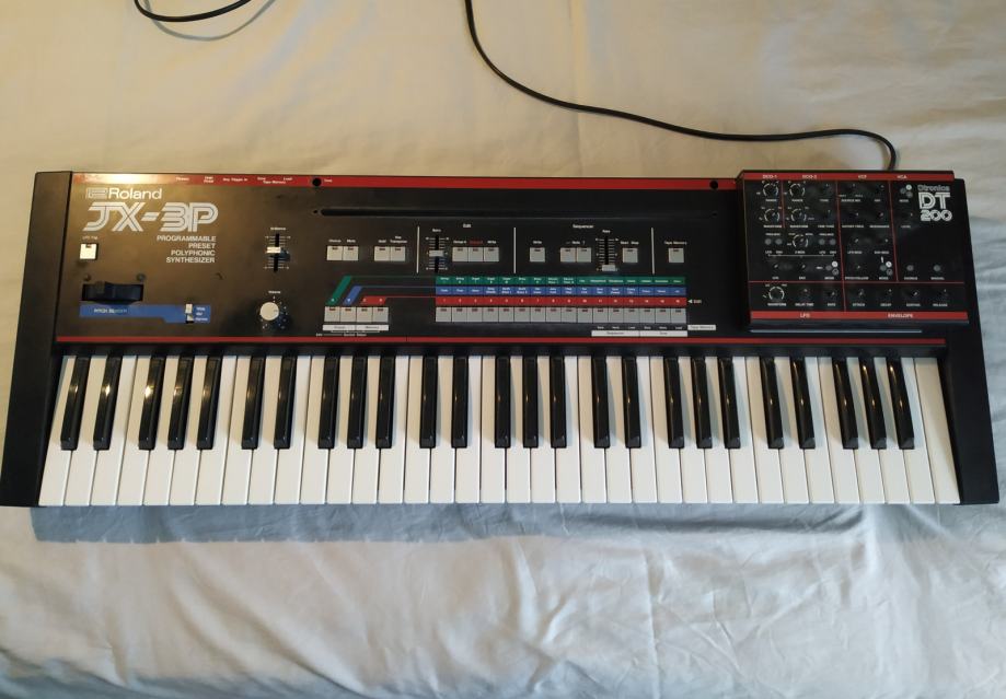 Prodajem Roland JX-3P sintisajzer sa pripadajućim dt-200 kontrolerom. Sint je u super stanju, friško servisiran (06/2023- cijeli sint/potenciometri/tipke očišćeni, sint kalibriran, zamijenjena 2 chorus čipa zbog preglasnog chorus "wusha"), na samom kućištu ima par sitnih flekica, što je i očekivano ako se u obzir uzme datum proizvodnje instrumenta (početak 80ih). Uz sint ide i kontroler DT 200, kupljen na Thomannu u 10/2021, plaćen 2200 kn.