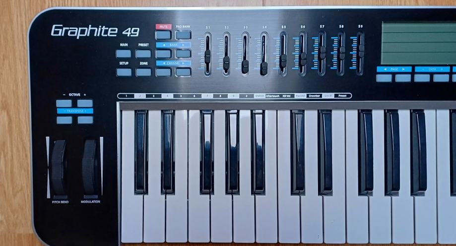 Samson Graphite MIDI kontroler-klavijatura (49 tipki). Novo, nekorišteno, u originalnoj kutiji. Više informacija o modelu: https://samsontech.com/products/usb-midi/keyboard-controllers/graphite49/