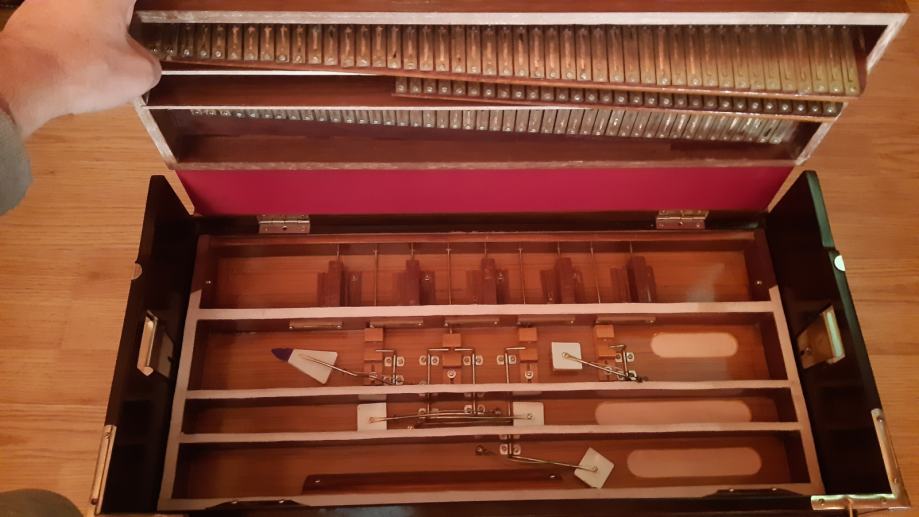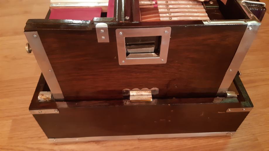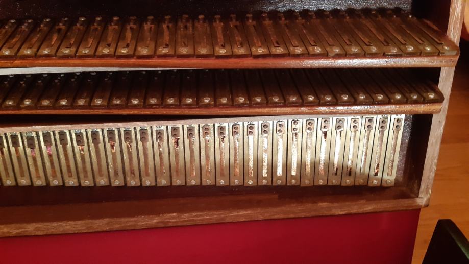 Drveni poklopac omogućuje da se harmonij može svirati i tiše i glasnije (po potrebi) što je zorno prikazano u videu.