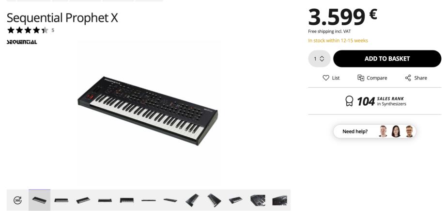 Sound production: Two 16-bit/48kHz sample-based voices plus two digital oscillators with Waveshaper