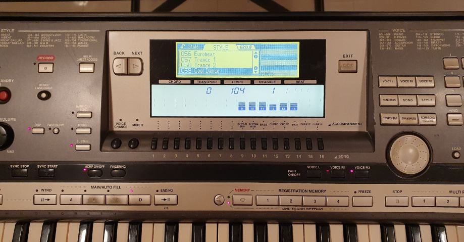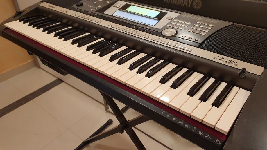 Yamaha PSR-640, klavijatura pet oktava, sa vidljivim tragovima korištenja (7/10) ali ispravna (osim flopy disca) i za svoje godine jako kvalitetna i korisna. Ima hrpu isprogramiranih tvorničkih ritmova. To je jedan od prvih klavijatura aranžera. Dobra za fešte kao i za one koji se tek uče svirati. Višak mi je, samo smeta pa je cijena simbolična i *FIKSNA*. Preuzimanje u Ivanić Gradu.