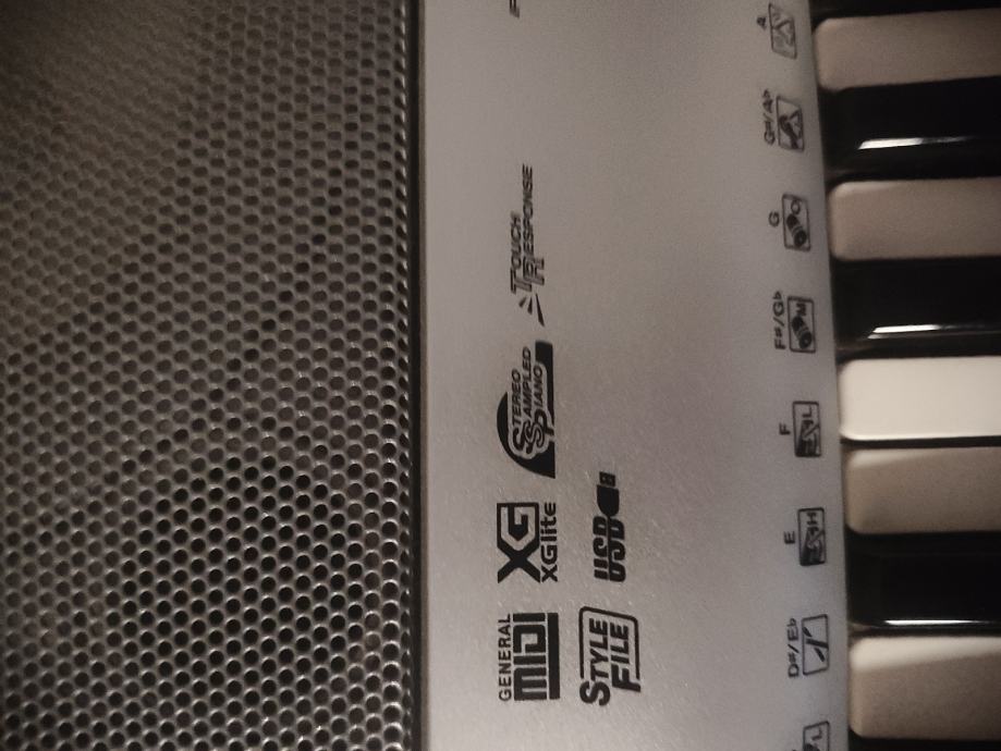 Izvrsna klavijaturau vrlo dobrom stanju ima osjet jačine pritiska dodira kao pravi klavir ima usb moze se tonovi ubacivati preko pc.a .iako je sarija verzija yamahe radi odlicno lijep čist zvuk .ona dolazi s napajanjem i s stalkom