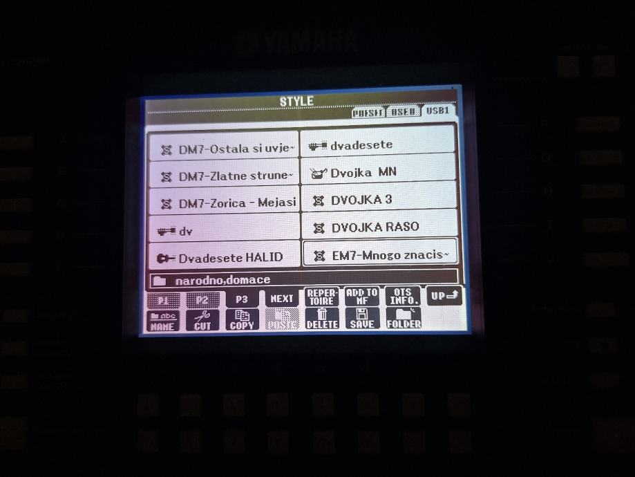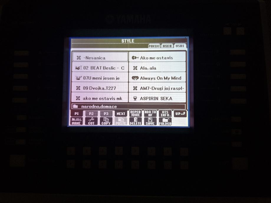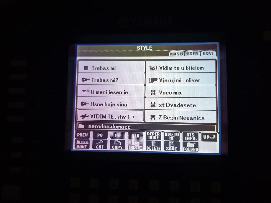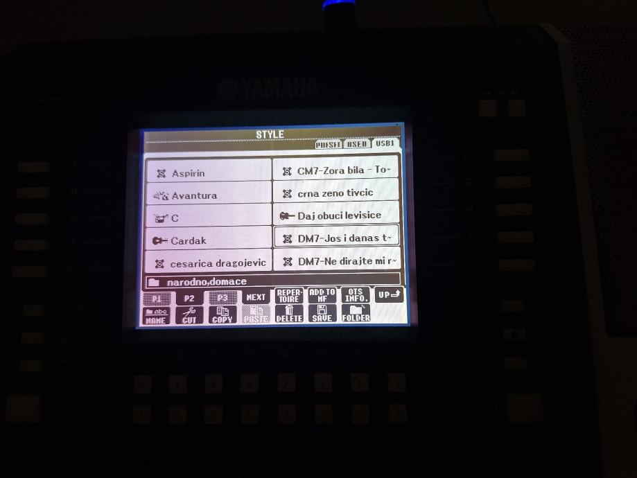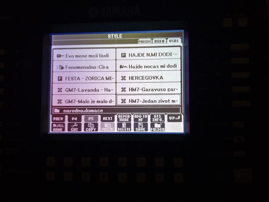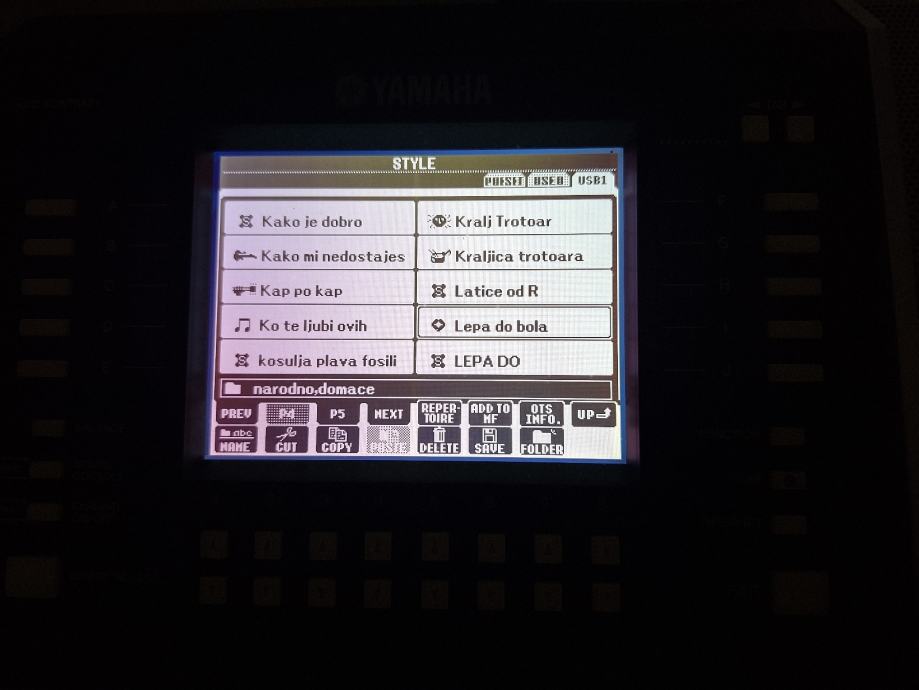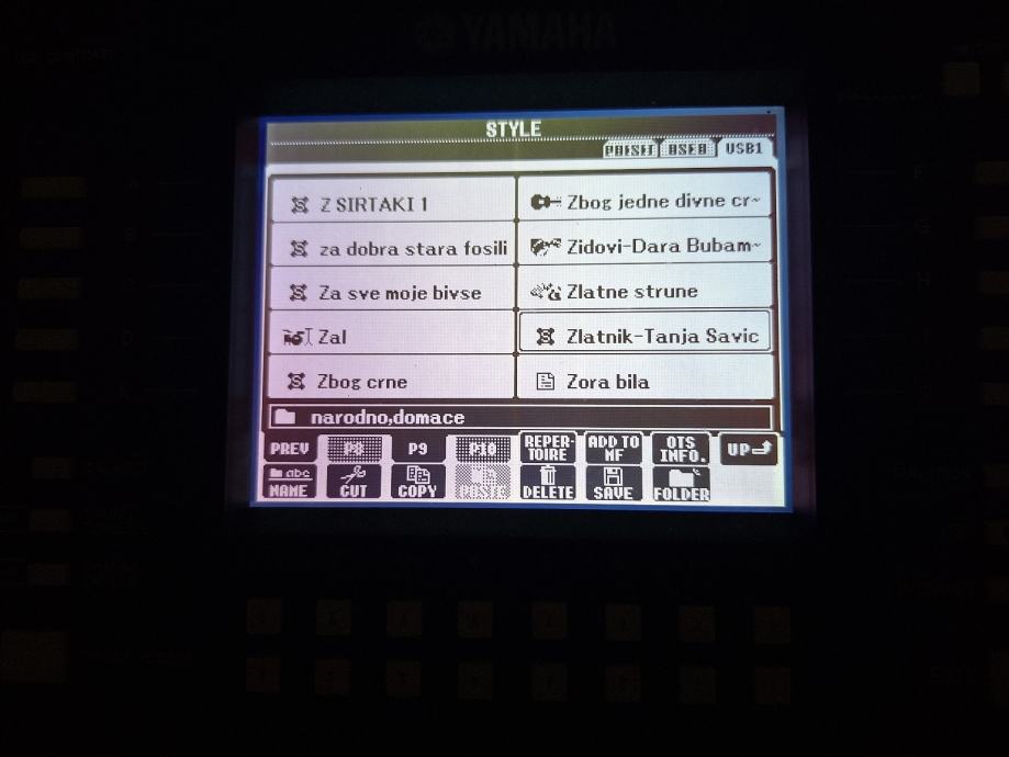usb sa oko 3000 pratnji svih zanrova glazbe namjenskih i ne namjenskih ritmova,ima nesto terca,boja i zvukova plus 100-tinjak karaoke pjesama klavijature sviraju same a text pokazuje na displeju klavijature