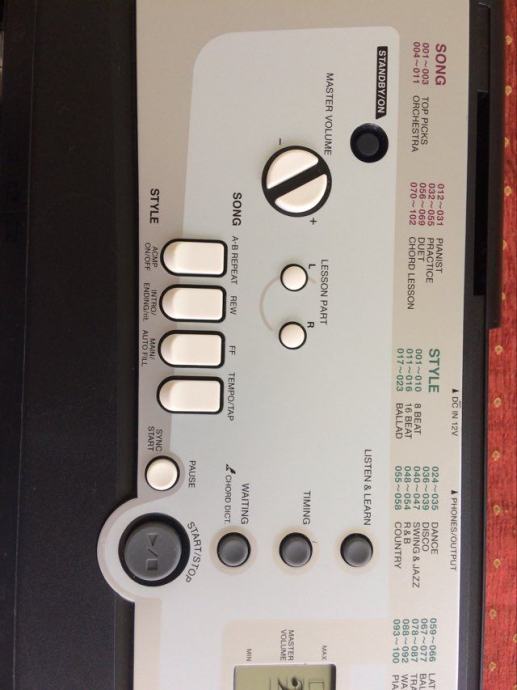 Control: Accompaniment on/off, sync-start, start/stop, intro/ending, main A/B (auto fill)