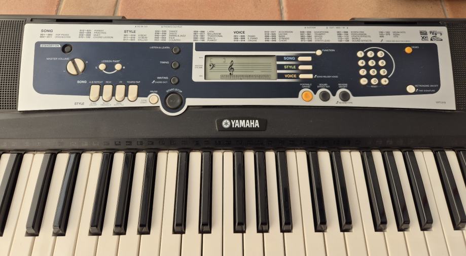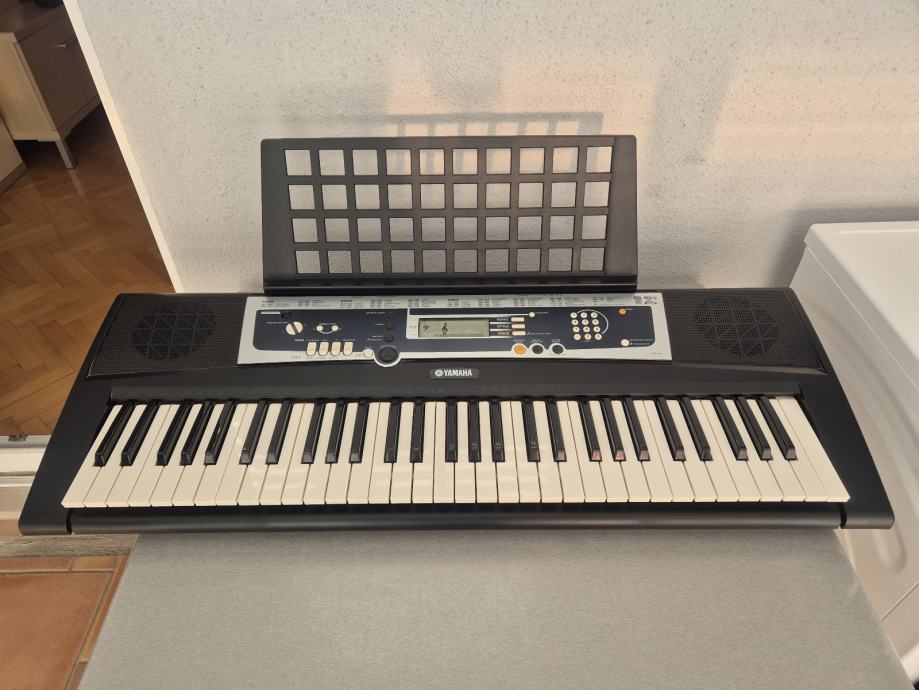 Odlično očuvana klavijatura sa punom veličinom tipke. Uz klavijature ide stalak za klavijature, stalak za note i napajanje.