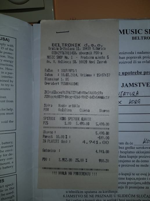 Odličan klavir za početnike kao i za iskusnije glazbenike. Gotovo nov, nekorišten.