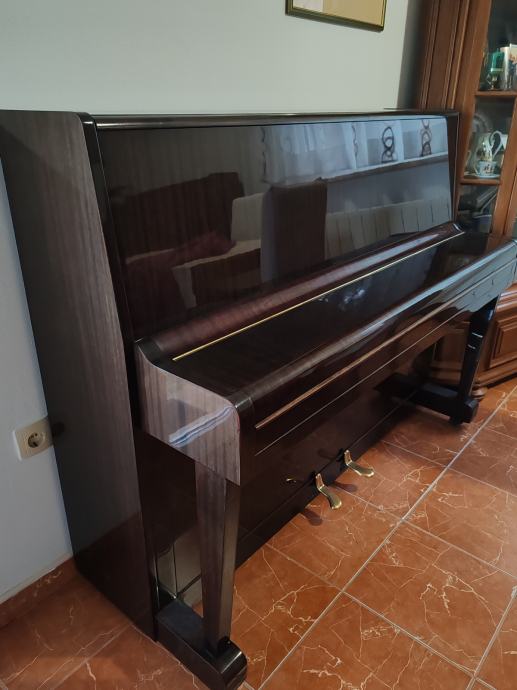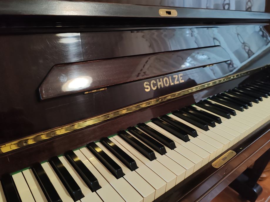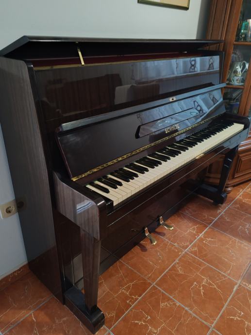 Prodaje se nevjerovatno očuvani i visoko kvalitetni pianino Scholze (Petrof). Prva je ruka i nije istrošen. Uvijek stajao u suhom, daleko od radijatora, vlage i sunca. Smeđe je boje i ima visoki sjaj. Idealan je za nastavu klavira tj. za vježbanje kroz sve stupnjeve školovanja a pogotovo za učenike i studente koji se s glazbom žele ozbiljnije baviti. Rijetko ćete naći ovako očuvan pianino a za ovaj to vrijedi koliko za mehaničke unutarnje dijelove, toliko i za njegovu vanjštinu. Jako malo je zapravo sviran. Odlično drži štim, batići imaju dovoljno "mesa" a svi filcevi su nepotrošeni što zna biti rijetkost i boljka za rabljene klavire. Pianino je ugođen nedavno dva puta prije prodaje i pregledan te nema nikakvih daljnjih ulaganja. Mehanika je također kompletno izregulirana.