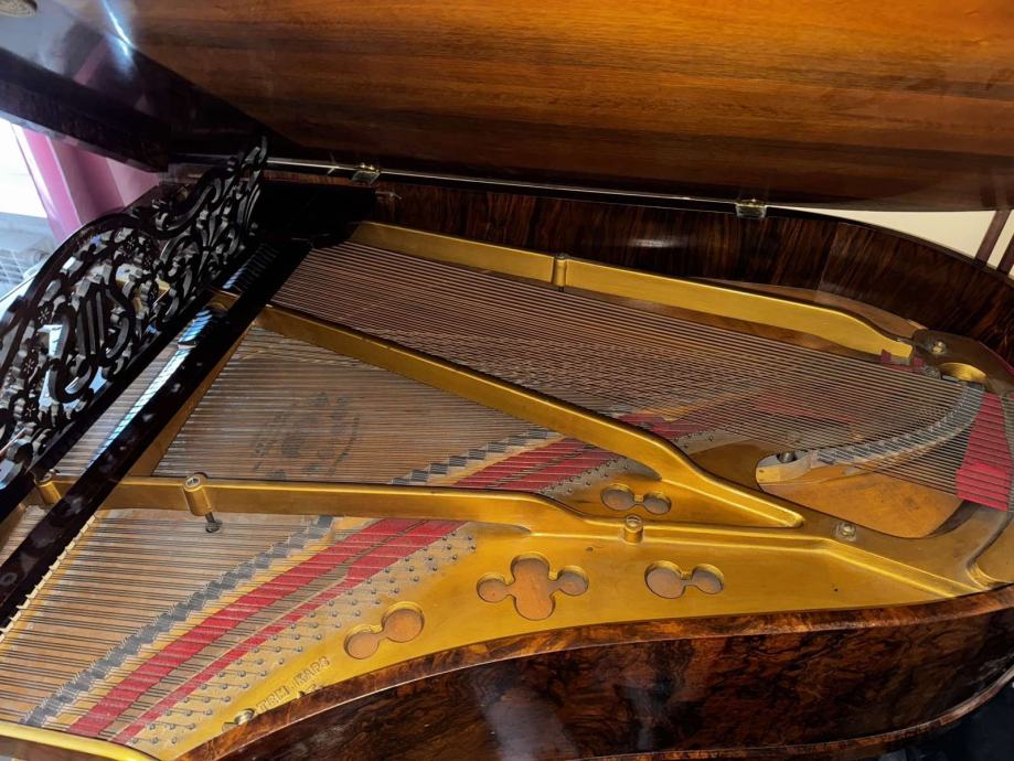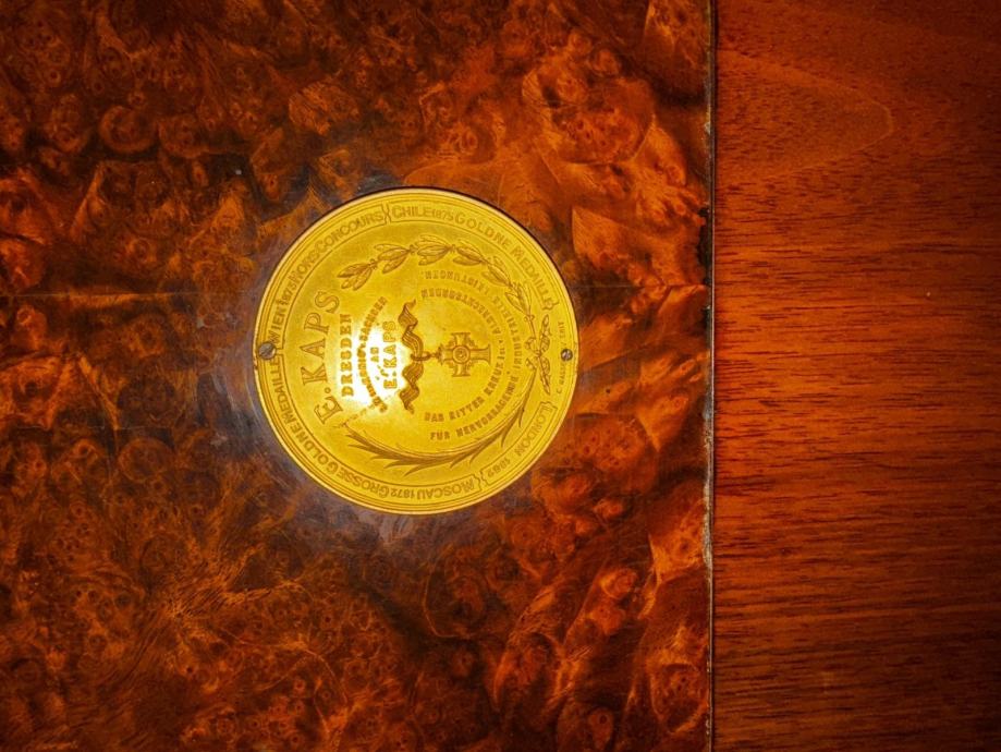 Radi se o vrhunskom instrumentu svog vremena, ručne izrade, s bogatim furnirom i elegantnim rezbarenim notnim stalkom (lyra motiv). Klavir nosi originalnu zlatnu medalju E. KAPS - Dresden, dodjeljenu na međunarodnim izložbama, što potvrđuje njegovu povijesnu i umjetničku vrijednost.