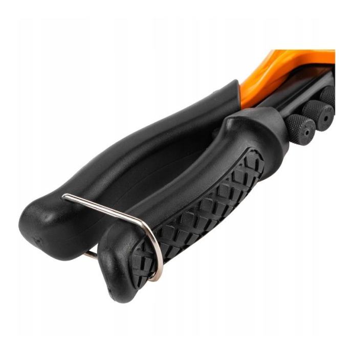 Ručni uređaj za zakivanje namijenjen za zakovice od aluminija, čelika i nehrđajućeg čelika.Zahvaljujući zakovici moguće je brzo i učinkovito spojiti različite vrste konstruktivnih elemenata kao što su: koža, gips ploče, limovi, nosači, konzole, strojni elementi, plastični elementi, razne vrste tkanina.Uređaj omogućuje korištenje zakovica sljedećih veličina: 2,4, 3,2, 4,0, 4,8 mm.Adapteri za različite promjere pohranjeni su u tijelu alata.Vrhovi se zamjenjuju uvrtanjem u glavu pomoću navoja.Profilirana, ergonomska ručka od protukliznog materijala.Ima zasun koji olakšava spremanje alata u sklopljenom stanju.Vrhunska kvaliteta.PRIMJENA ZAKOVICA:Aluminij [mm (inča)]: 2,4 (3/32), 3,2 (1/8), 4,0 (5/32), 4,8 (3/16)Čelik [mm (inča)]: 2,4 (3/32), 3,2 (1/8), 4,0 (5/32)Nehrđajući čelik [mm (inča)]: 2,4 (3/32), 3,2 (1/8), 4,0 (5/32)TEHNIČKI PODACI:Tip: Ručni zakivacVrsta zakovica: aluminij / čelik / nehrđajući čelikUkupna duljina [mm]: 195Težina [g]: 500]]>
