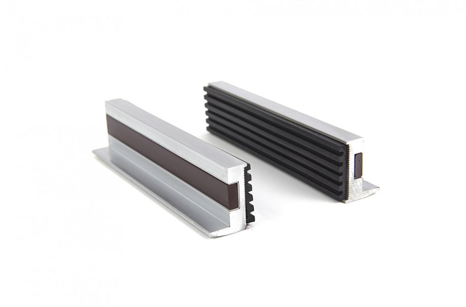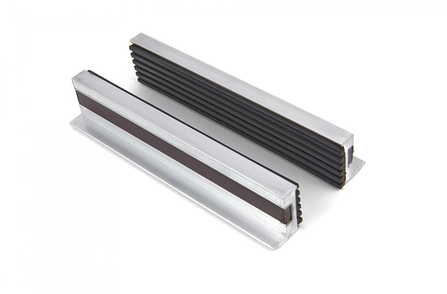Ove aluminijske magnetske stezne čeljusti opremljene su gumenim steznim površinama u kojima su napravljeni utori. Osim boljeg prianjanja, ovi utori nude i mogućnost stezanja okruglih ili poligonalnih predmeta.