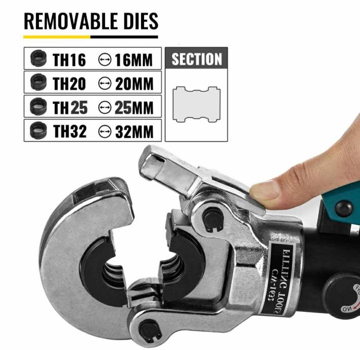 izmjenjive čeljusti omogućuju rad u punom rasponu promjera višeslojnih cijevi od 16 mm do 32 mm