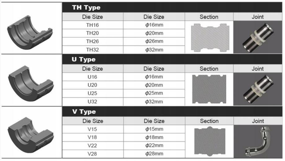 PEX UV TH pomoću spojnica za prešanje. Matrice za presanje odgovaraju najčešćim