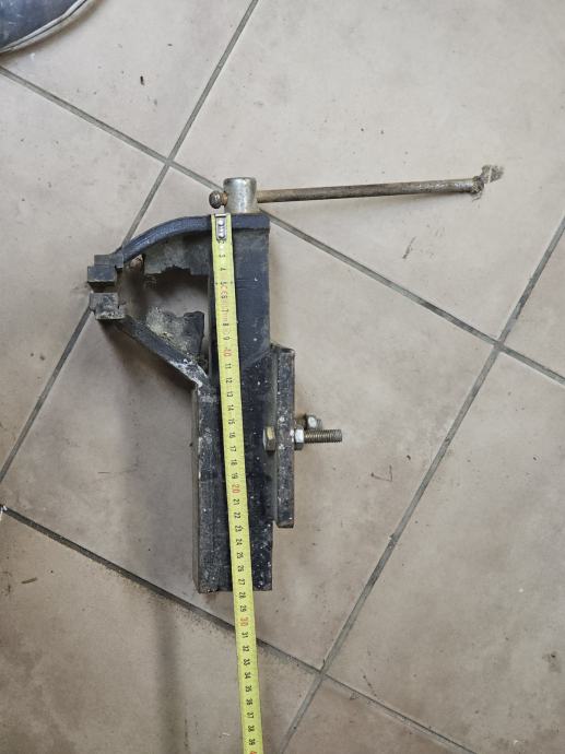 Prodaje se rabljeni škripac s normalnim čeljustima, ali i dodatnim prihvatom za cijevu. Škripac se ne koristi već desetak godina, ali je bio pohranjen na suhom tavanu tako da je u dobrom stanju. Dimenzije vidljive na slikama.