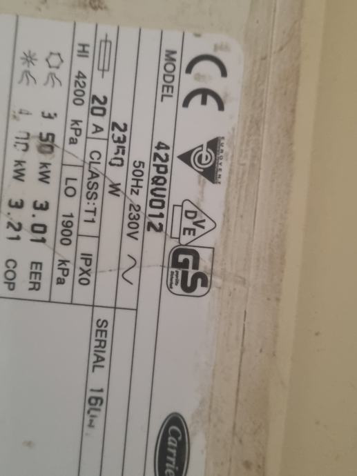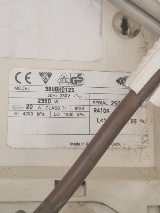 Prodajem Carrier inverter klimu (model 38VB012S) – unutarnja, vanjska i daljinska jedinica.