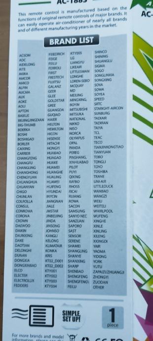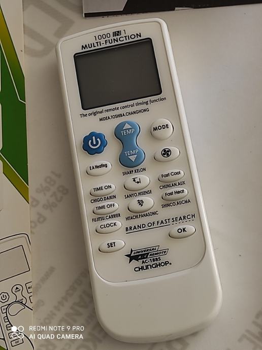 Prodam daljinski za sve klime,popis šifri u prilogu ,kvalitetan, bolji od originala ,gumi silikonske tipke, prima upravljanje svim tipovima i pinovima i svim proizvodima.,Prodam za 220 kn.sada smanjenje na 19 e.Moguca dostava postom.