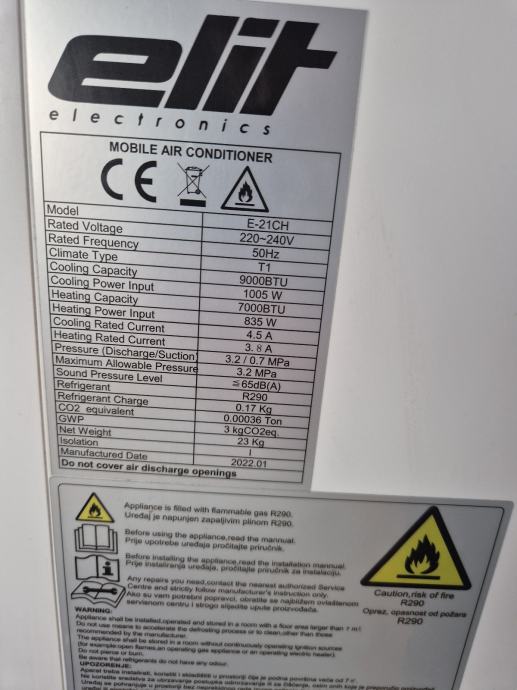 Kapacitet hlađenja/grijanja 9000BTU / 2.6kW
