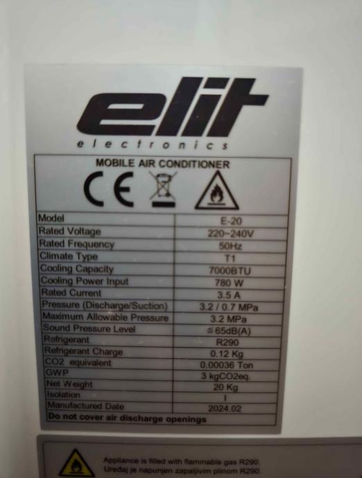 Kapacitet hlađenja 7000BTU / 2.1kW