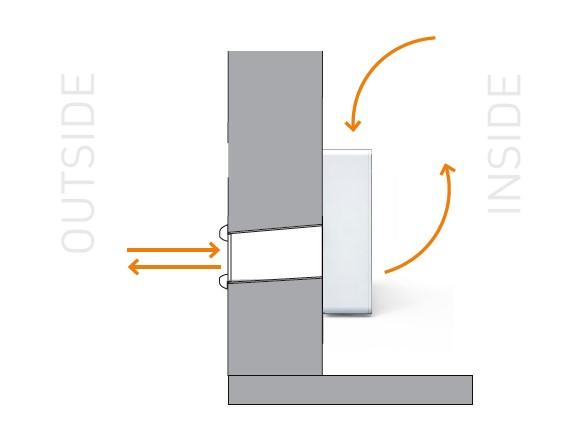 Uređaj koristi vanjski zrak kao izvor energije – usisava zrak, oduzima mu toplinu i prenosi je u prostoriju putem dva potpuno odvojena optoka zraka. Rashlađeni zrak zatim se odvodi van. Pri niskim temperaturama, automatski se aktivira integrirani dodatni grijač, čime FIRE+ICE osigurava pouzdan rad tijekom cijele godine.
