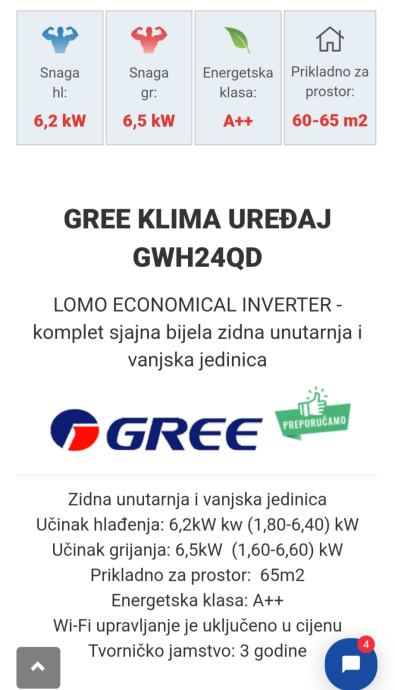 Prodajem Gree Lomo Economical 6.5 kw klima uređaj. Unutarnja i vanjska jedinica. Stanje novo, zapakirano. Garancija 3 god.