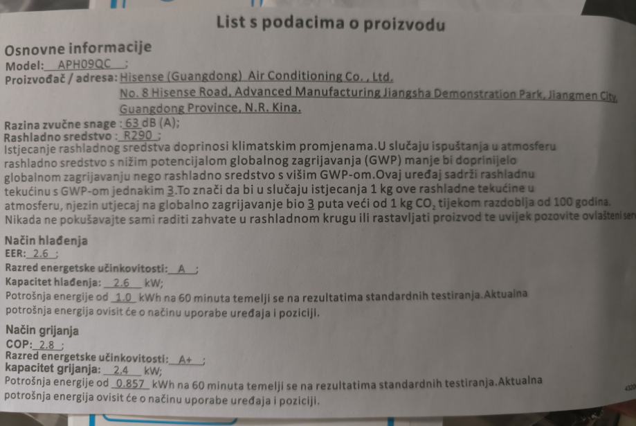 Prodajem Hisense prijenosni klima uređaj korišten nekoliko puta, potpuno ispravan, dvije godine star, bez garancije.