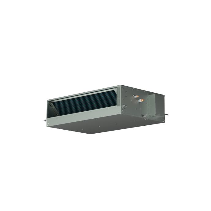 Primairy R32 kanalna jedinica ima širok raspon statičkog tlaka što ju čini praktičnom i fleksibilnom za različite ugradnje. Fleksibilna ugradnja omogućena je cijevima radnog medija koje mogu biti udaljene i do 50m te imati visinsku razliku i do 30m. Kanalna jedinica pruža komfor režima grijanja i hlađenja sve do -15°C vanjske temperature. Inovativna DC inverter tehnologija precizno prilagođava potreban učin grijanja prostora te osigurava izdržljivost instalacije. U slučaju nestanka struje, jedinica se automatski pokreće i nastavlja raditi prema prethodnim konfiguracijama. Mehanizmi cirkulacije zraka mogu se izmijeniti od ispod ili iza što ne zahtjeva promjenu opreme već samo prilagođavanje statičkog tlaka. Unutarnja jedinica RPIH-6.0UFE1NH Učin hlađenja (min/nom/maks): 3,20/14,19/16,0 kW Učin grijanja (min/nom/maks): 3,0/13.4/14,60 kW EER/COP: 2,97/3,47 SEER/?s,c: 5,94/235% SCOP/?s,c: 3,72/146% Zvučni tlak-hlađenje (niski/(srednji/visoki): 42/45/47 dB(A) Zvučna snaga-hlađenje: 77 dB(A) Protok zraka-hlađenje (nizak/srednji/visoki): 1900/2200/2400 m3/h Nominalni raspoloživi tlak (min/maks): 50,0 (0-120) Pa Dimenzije (V x Š x D): 350 x 1300 x 800 mm Težina kućišta: 51 kg Pumpa kondenzata: uključena Promjer cijevi kondenzata (izlaz): 32 mm Filter zraka: uključen Napajanje: 230V/1Ph/50Hz Upravljač: HCWA21NEWH, žičani upravljač (uključen) Opcija upravljača: HRBA31NEGH, bežični (nije uključen)