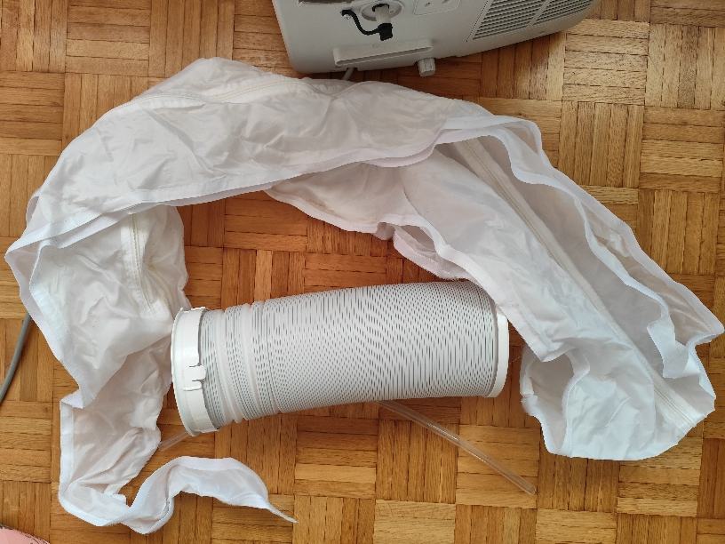 Uz klimu dolazi i daljinski upravljač kao i ispušna crijev dužine 150 cm.