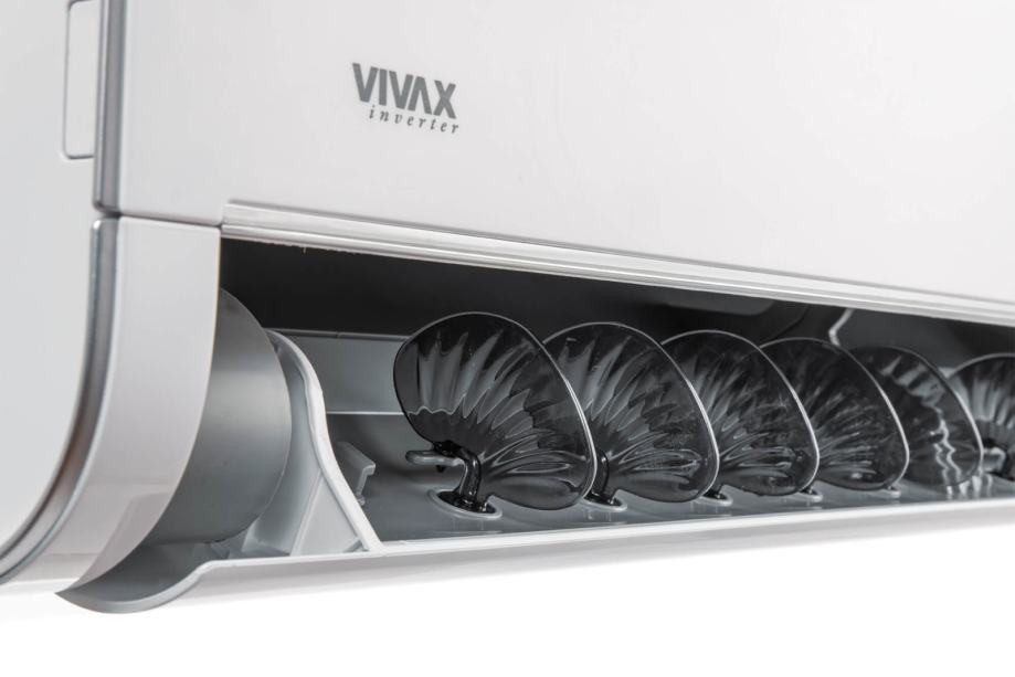 VIVAX H+ design klima ACP-12CH35AEHI+ R32 ima nominalni kapacitet grijanja 3,81 kW, a nominalni kapacitet hlađanje 3,52 kW. Ovaj model ima posebnu 3D inverter tehnologiju koja pruža najbolje performanse, a istovremeno omogućuje znatnu uštedu energije. Također, omogućuje bešumni rad za udobniju atmosferu i miran san. Whisper Air omogućava kontrolu za lakši protok zraka koji je uzrok većine unutarnje buke. Time se postiže ravnoteža između visokih performansi i niske razine buke. 3D strujanje zraka omogućava protok zraka do svakog kuta prostorije. Bio filter i ionizator uklanjaju zagađivala i alergene iz zraka što ga čini vrlo čistim. Takav zrak je vrlo povoljan za osobe osjetljive na nečistoću zraka i za osobe koje imaju probleme s alergijama.
