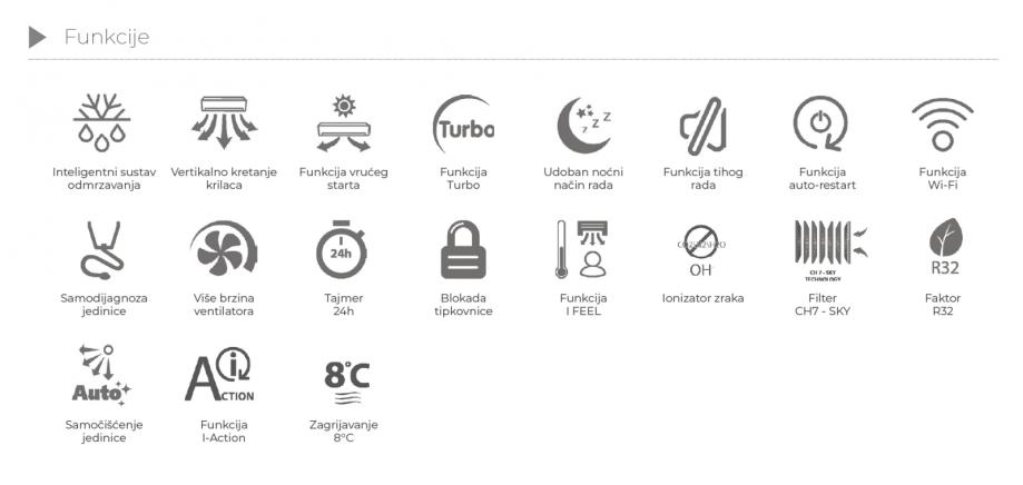 • Funkcija "I FEEL" - ugrađeni senzor temperature u daljinskom upravljaču. Točnost održavanja temperature od 0,5 ° C;