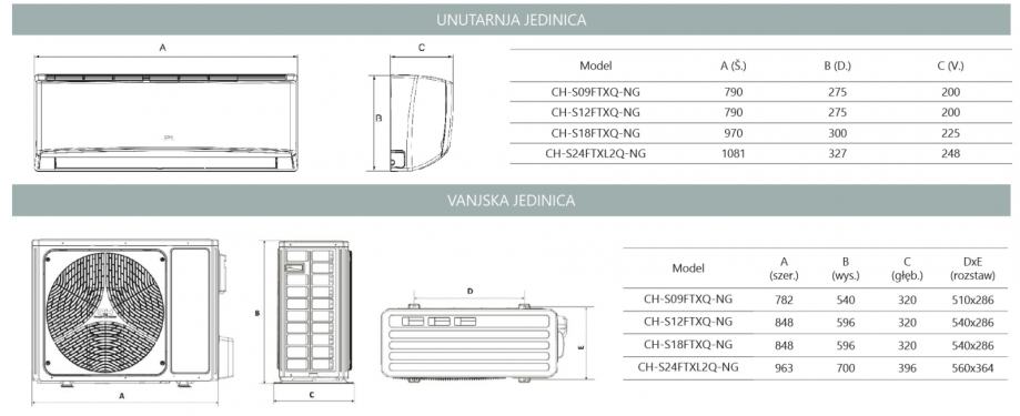 • Rad od -24 ° C do + 48 ° C za hlađenje i od -15 ° C do + 24 ° C za grijanje;