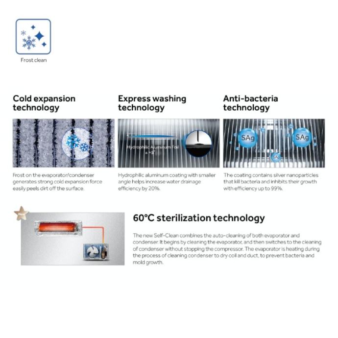 Automatsko samočišćenje hladnom ekspanzijom - zaleđivanjem površine isparivača učinkovito se uklanjaju nečistoće i bakterije.