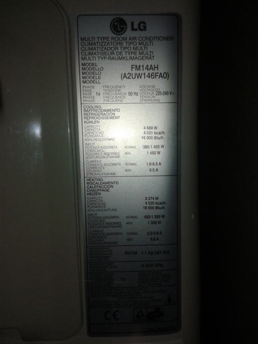 Prodajem klima uređaj sa jednom vanjskom jedinicom (inverter) i dvije unutarnje jedinice ( zidna + stropna).Vanjska jedinica - FM14AH (A2UW146FA0- sa inverterom ) , zidna(unutarnja)- MA12AHV (AMNH12GAFV1) te stropna jedinica - MA12AHVNF1 (AMNH12GAFV1). Uređaji su u odličnom stanju (2010.g.) te razlog prodaje je zatvaranje trgovine. Prodaje se jedino u kompletu za 4000 kn. Uređaji se nalaze u Rijeci. ZA INFORMACIJE NAZVATI NA BROJ: 051/412-135