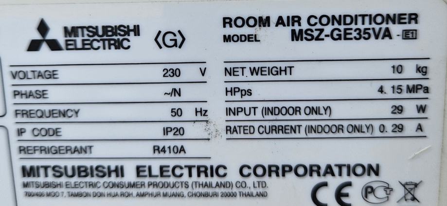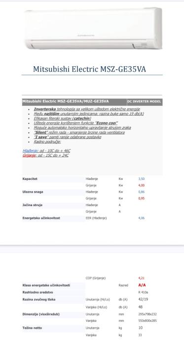 Prodajem rabljeni, potpuno ispravan klima uređaj Mitsubishi Electric MSZ-GE35VA