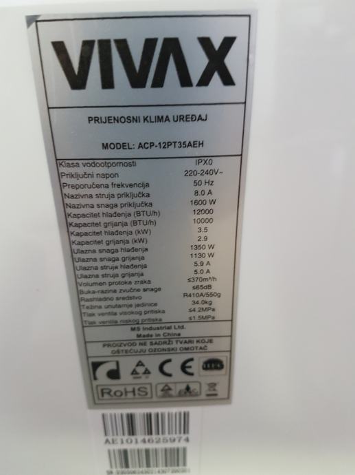 Pokretni klima uređaj, korištena svega 2 mjeseca
