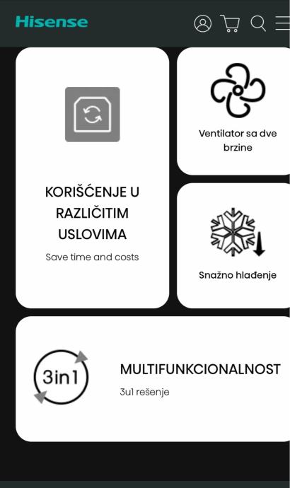 Prijenosni klima‑uređaj (3-u-1: hlađenje, odvlaživanje, ventilacija)