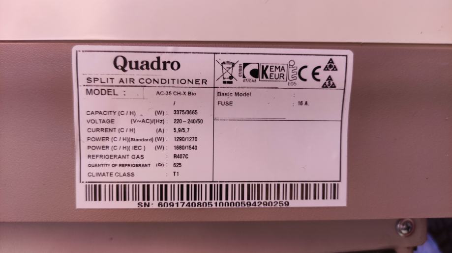 3.5 kW, modovi rada: grijanje / hlađenje / isušivanje, noćni mod, turbo mod, bio filter, daljinski upravljač, rabljena - ispravna, napunjena plinom, skinuta zbog rekonstrukcije kuće