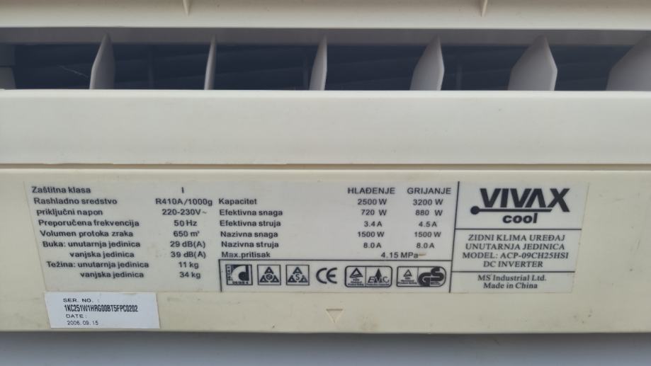 Prodajem rabljeni llima uređaj Vivax invettet 3.5kw ACP-09CH25HSI