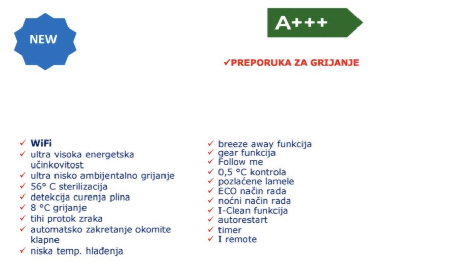 - Energetska klasa (grijanje) A+++ (13000 Btu/h)