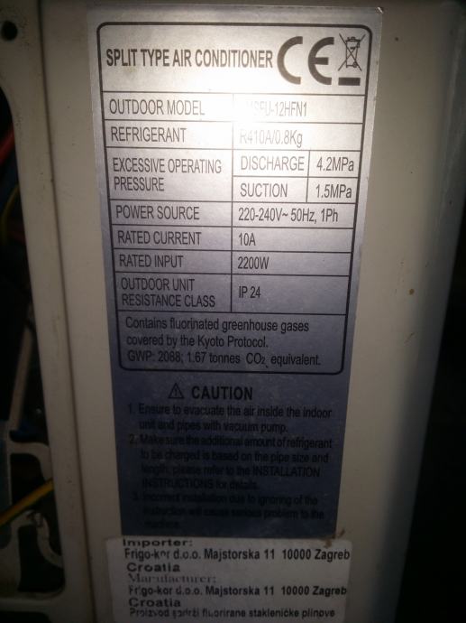Motor unutarnje jedinice sa trubinom 250kn Motor vanjske jedinice sa elisom 250kn Senzori po 80kn Anion generator 80kn Displej unitarnje jedinice 150kn Daljinski upravljac 100kn Grijac vanjske jedinice 120kn Maska - mrezasta zastitna plastika 100kn Dijelovi su rabljeni,ispravni, neispravan kompresor i upravljacka elektronika.
